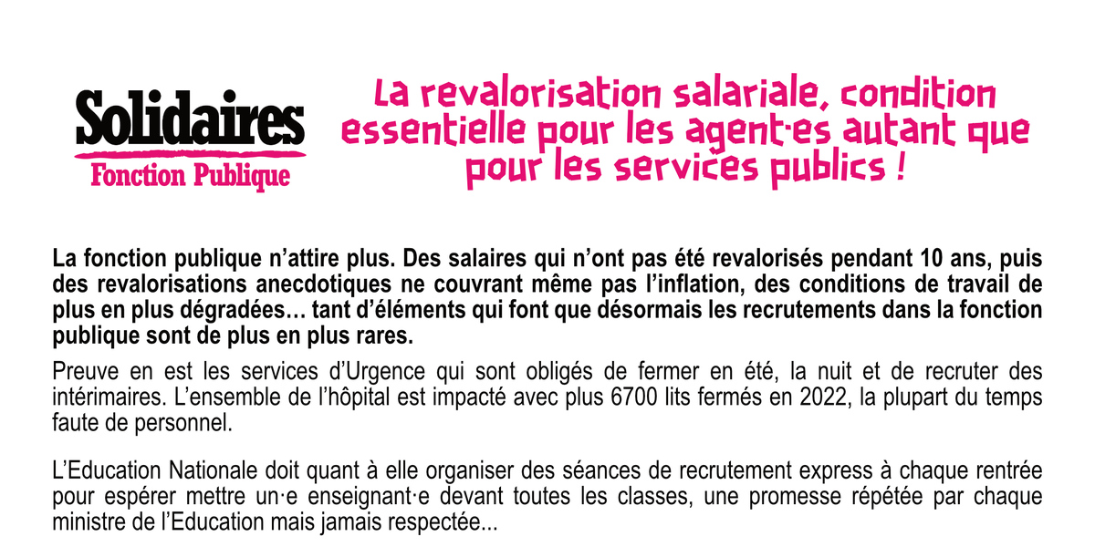 A cela s’ajoute une perte de sens dans l’exercice des missions et une dégradation constante de nos conditions de travail. Il y a donc une urgence absolue à travailler sur l'attractivité de la fonction publique et cela passe obligatoirement par la dimension salariale et la question des conditions de travail.