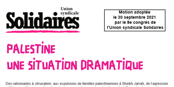 Ce sont plusieurs questions que la Commission internationale de Solidaires se pose, dont nous souhaitons débattre et chercher les réponses ensemble, pour mettre à jour la position de notre syndicat sur la situation en Palestine.