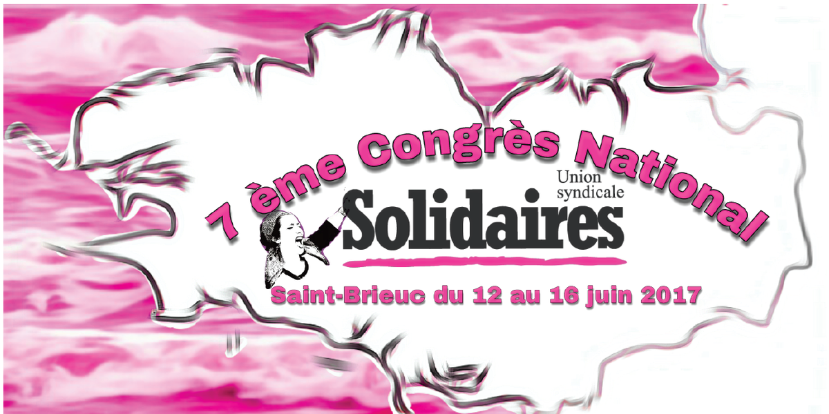 Le prochain congrès national de l'Union syndicale Solidaires se déroulera à Saint-Brieuc, organisé par l'ensemble des Solidaires départementaux de la région Bretagne, du 12 au 16 juin 2017. Il s'agira du 7ème congrès de notre jeune union syndicale antiraciste, féministe, écologiste, internationaliste, anticapitaliste, et unitaire.