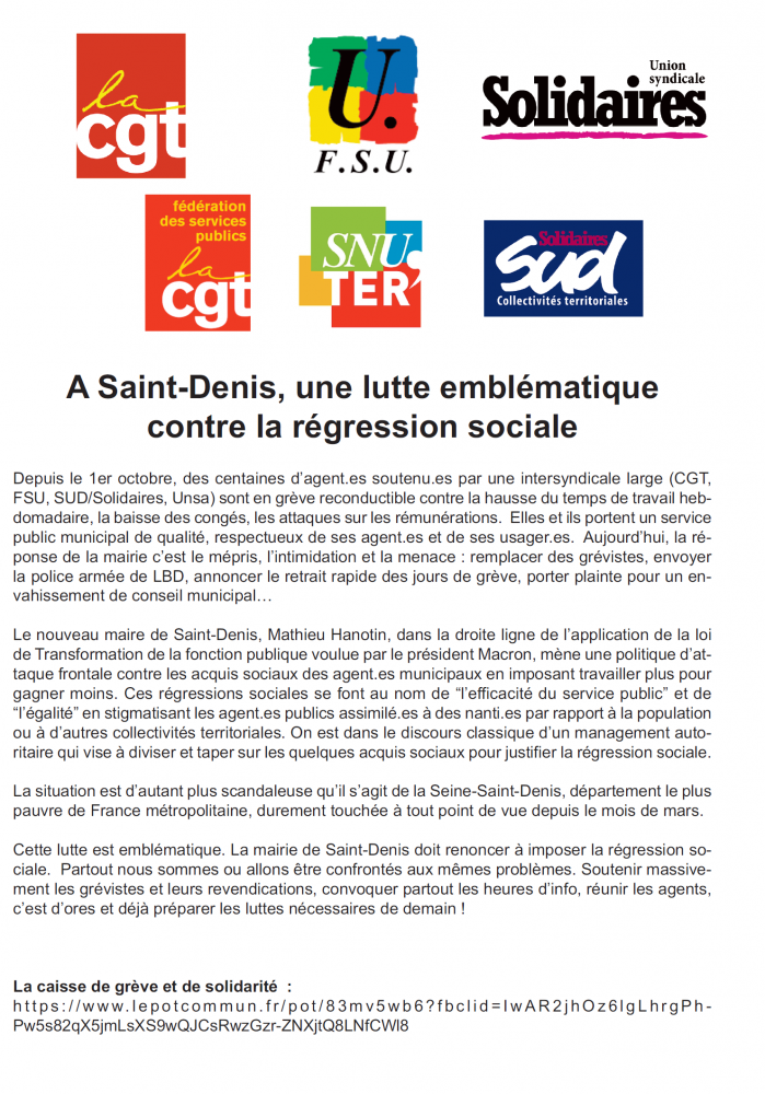 Cette lutte est emblématique. La mairie de Saint-Denis doit renoncer à imposer la régression sociale.