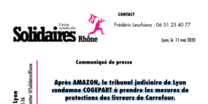 Après AMAZON, le tribunal judiciaire de Lyon condamne COGEPART à prendre les mesures de protections des livreurs de Carrefour