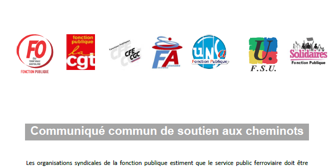 Communiqué commun de soutien aux cheminots