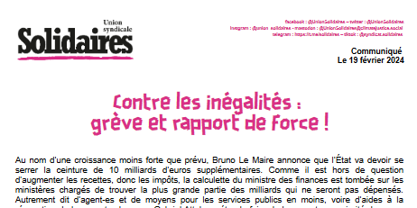 La justice sociale passe par la construction du rapport de force. Les grèves de secteurs parfois massives comme celles des contrôleurs de la SNCF ce week end montrent la voie. L’Union syndicale Solidaires appelle à amplifier le mouvement partout dans les entreprises et les administrations pour obtenir notre dû !