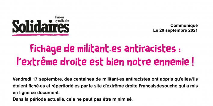 L'ensemble des camarades de Solidaires qui se sont retrouvé-es fiché-es ont décidé de s’ associer à la plainte collective lancée contre ce que nous considérons comme une menace et une agression !
