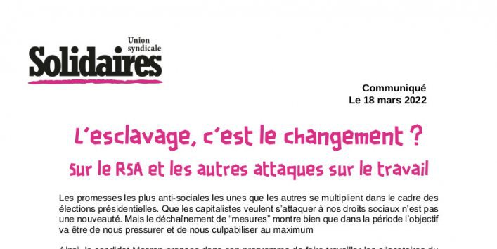 L’esclavage, c’est le changement ? Sur le RSA et les autres attaques sur le travail