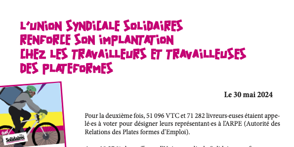 L’Union syndicale Solidaires renforce son implantation chez les travailleurs et travailleuses des plateformes
