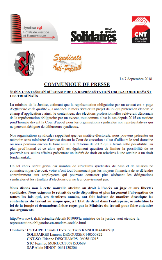NON à l'extension du champ de la représentation obligatoire devant les tribunaux