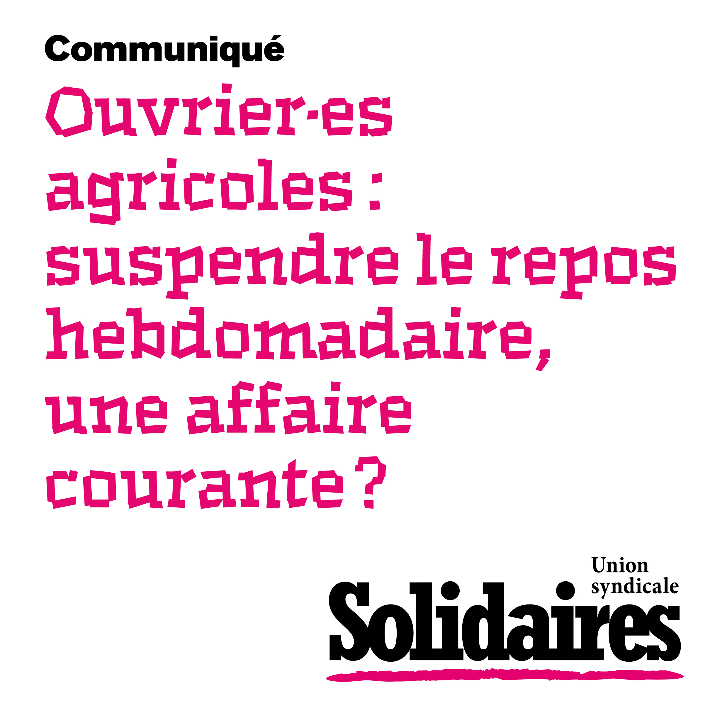 L’Union syndicale Solidaires exige par conséquent l’abrogation immédiate de ce décret. Solidaires revendique pour toutes et tous des conditions de travail décentes et respectueuses de la santé des salarié·es.