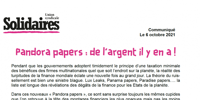 Pendant que les gouvernements adoptent timidement le principe d’une taxation minimale des bénéfices des firmes multinationales quel que soit l’endroit sur la planète, la réalité des turpitudes de la finance mondiale éclate une nouvelle fois au grand jour. La théorie du ruissellement est bien une sinistre blague. Lux Leaks, Panama papers, Paradise papers…. la liste est longue des révélations des dégâts de la finance pour les Etats de la planète.