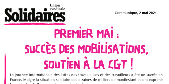 La dynamique de mobilisation autour du premier mai montre que les colères commencent à se déconfiner. L’Union syndicale Solidaires va continuer d’appuyer les luttes locales et sectorielles qui se multiplient dans la période.