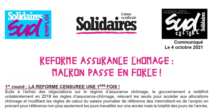 En mars 2021, le gouvernement publie un nouveau décret qui corrige à la marge le mode de calcul avec application au 1er juillet. De nouveau, plusieurs syndicats dont l’Union syndicale Solidaires ont fait recours devant le Conseil d'État pour faire censurer ce texte au motif des inégalités toujours aussi importantes engendrées par le système et les situations dramatiques que celui-ci allait provoquer. Finalement celui-ci a été suspendu en juin mais au motif d’un « contexte actuel pas favorable » à la réforme mais pas sur le fond. Tout cela alors que contrairement à la propagande gouvernementale, l’immense majorité des salarié-es précaires subissent bien plus qu’ils et elles ne choisissent l’alternance entre périodes de travail et périodes d’inactivité ! En quoi vu le contexte ils et elles pourraient-ils peser afin d’obliger le patronat à leur proposer des contrats pérennes ? Ce sont ces questions qui font le cœur de la réforme qui devront être tranchées à l’occasion de l’examen au fond du recours pour faire censurer cette réforme inique. C’est du moins ce qu’attendait les syndicats requérants…