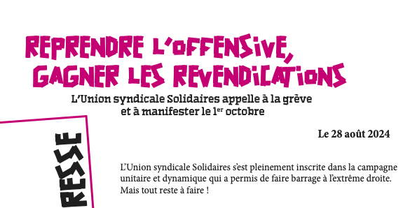 Emmanuel Macron ne comprend que le rapport de force. Pour imposer le changement et vivre mieux, l’Union syndicale Solidaires appelle à se mobiliser massivement par la grève et les manifestations, dans l’unité la plus large possible, le 1er octobre pour imposer nos mesures d’urgence !