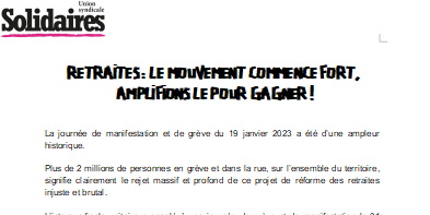 Cette semaine va permettre de convaincre largement l’ensemble des salarié-es d’être en grève et plus largement la population d’être dans la rue le 31 janvier.