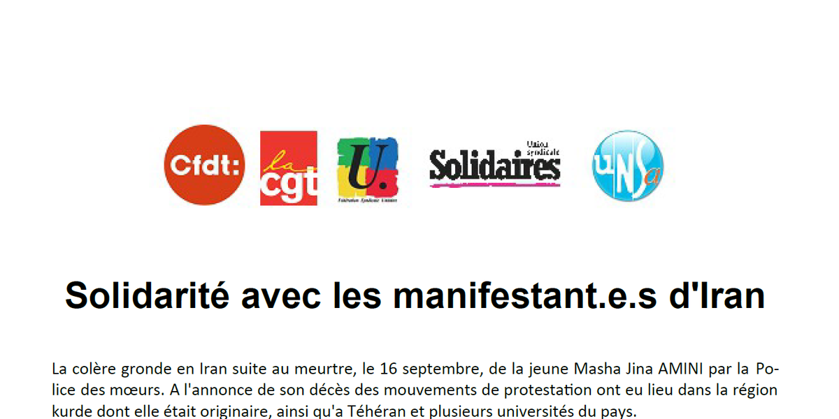 Déclaration intersyndicale - Solidarité avec les manifestant.e.s d'Iran