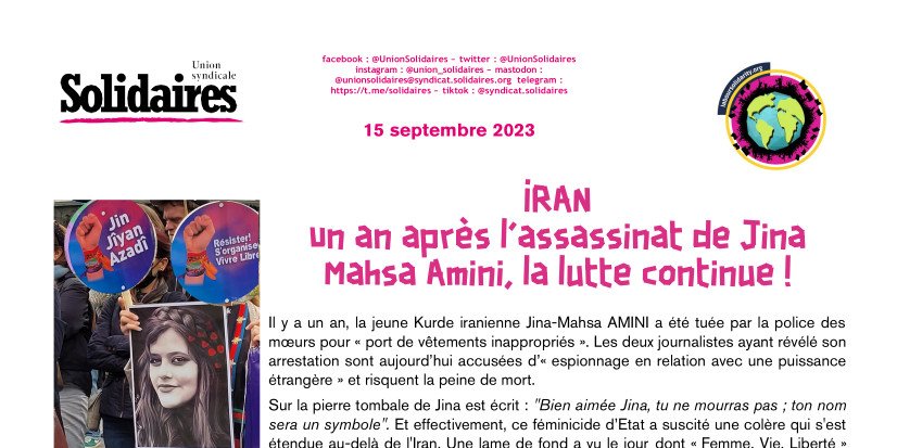 IRAN - Un an après l’assassinat de Jina Mahsa Amini, la lutte continue !