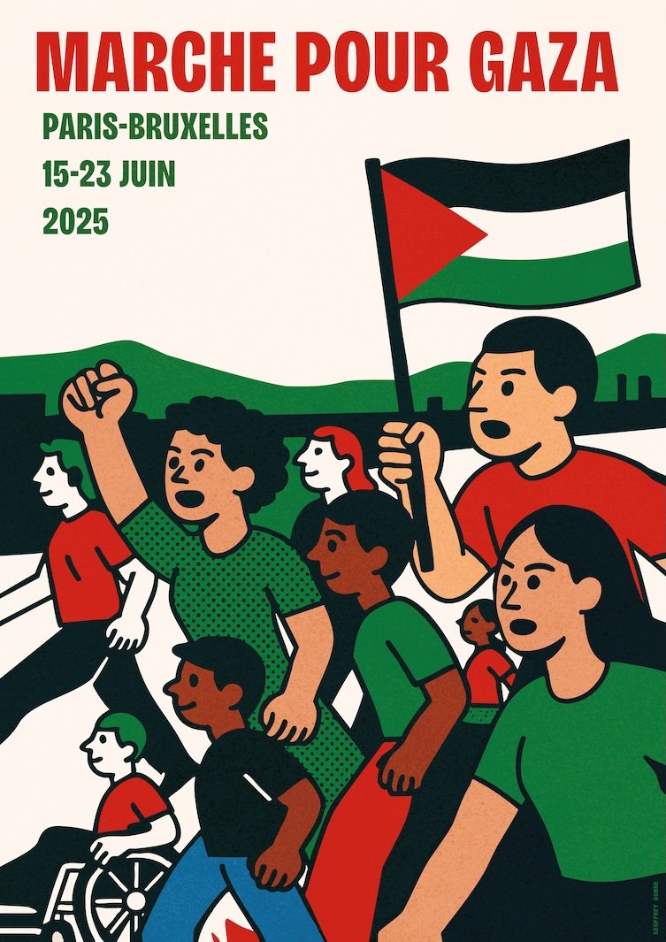 Les citoyennes et citoyens indignés par la situation du peuple palestinien à Gaza sont appelés à participer à une Marche de Paris à Bruxelles, entre le 15 et le 23 juin 2025, pour faire pression sur les autorités européennes afin qu’elles prennent des sanctions contre Israël.