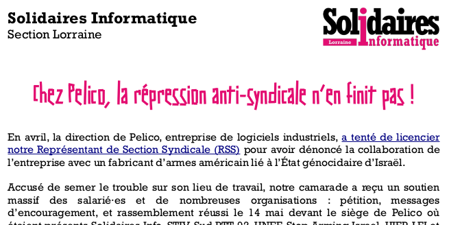 Chez Pelico, la répression anti-syndicale n’en finit pas !