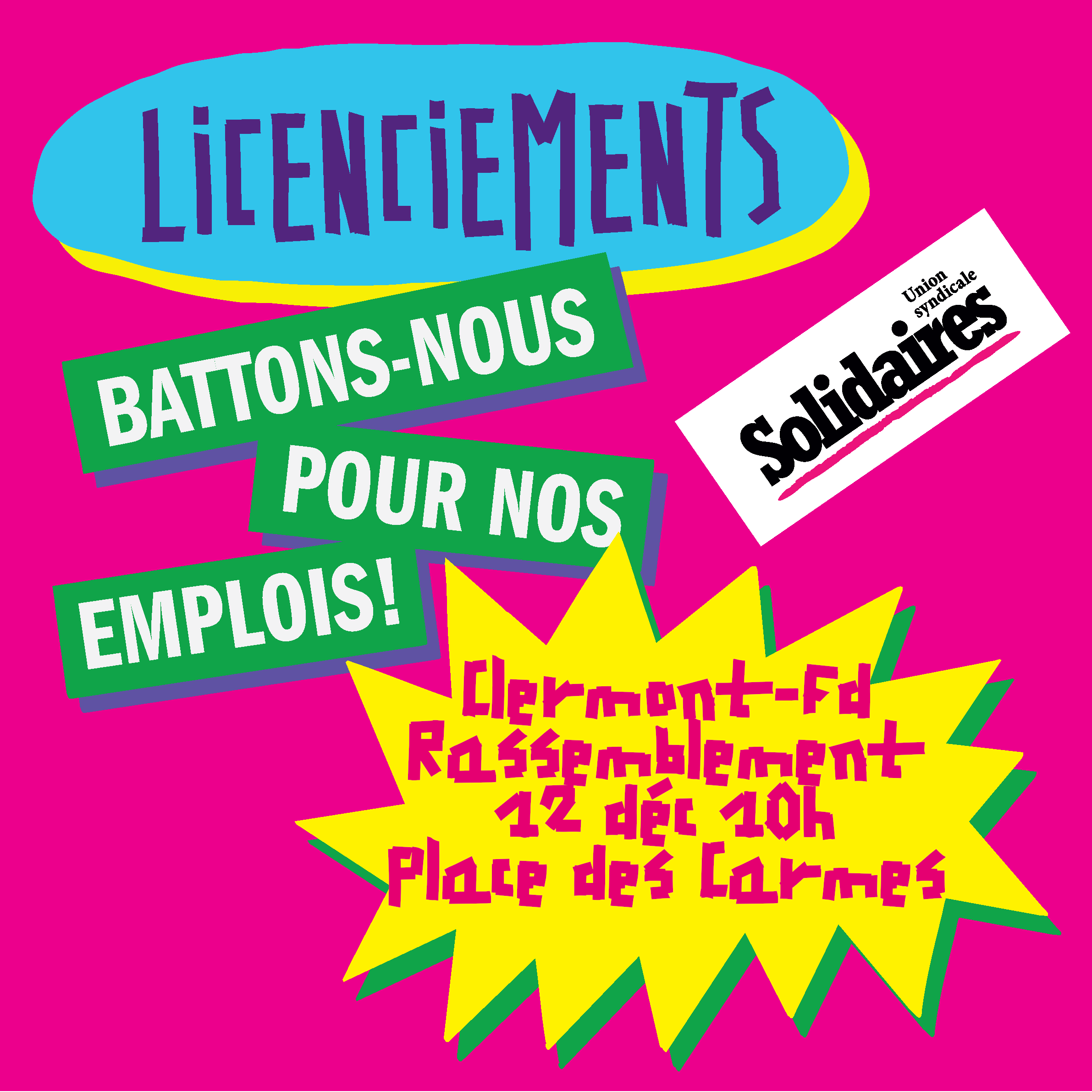 Localement, les fermetures d’usines, les délocalisations et les suppressions d’effectifs dans le public comme dans le privé continuent de dévaster le Puy de Dôme. Des sites industriels emblématiques comme Flowserve (Thiers) , LUXFER (Gerzat) avec 80 ans d’histoire anéantis, et plus récemment avec La Manufacture des Lumières (ex-Dietal, Saint Georges-de-Mons) fermée en 2024, laissant des familles entières dans l’incertitude. D’autres sites industriels voient leurs effectifs se réduire d’années en années : Valeo (Issoire 63) avec un effectif raboté, passant de 900 à 520 salariés en 30 ans et tout récemment chez PI System Automation (Romagnat) ou la suppression de 10 salarié∙es avant Noël vient d’être annoncée. Au-delà de l’industrie, ces suppressions massives d’emplois touchent désormais l’ensemble des secteurs d’activité dans le Puy de Dôme comme dans le commerce chez Auchan (Clermont-Nord), Leader Price (Brassac les Mines), Decathlon, ou encore le groupe La Montagne ou l’incertitude demeure...