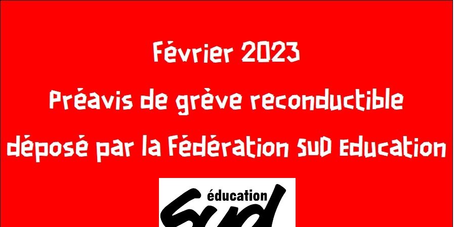Février 2023 : Préavis de grève février/mars déposé par la Fédération SUD Education