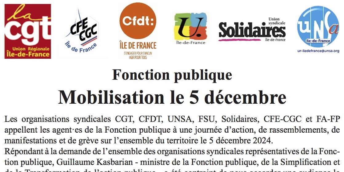 Fonction publique : Mobilisation le 5 décembre