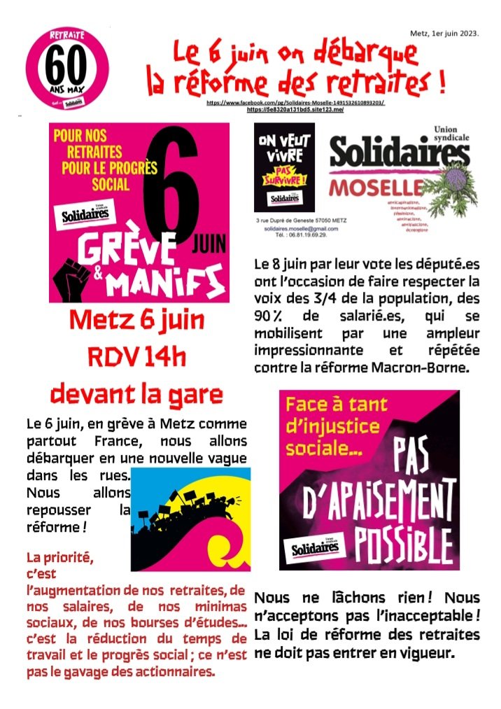 Le 6 juin, en grève à Metz comme partout France, nous allons débarquer en une nouvelle vague dans les rues. Nous allons repousser la réforme !