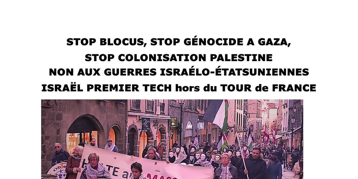 Le tour de France démarre le 05 juillet. L’équipe ISRAËL PREMIER TECH est un ambassadeur d’Israël qui s’affiche sur les courses cyclistes comme un État sportif, respectueux des règles, un État normal. Autrement dit ISRAËL PREMIER TECH fait du blanchiment de génocide et de nettoyage ethnique.
