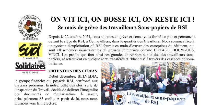 La mobilisation en soutien au piquet RSI de Gennevilliers aura lieu Mercredi 25 mai à 9H devant la Préfecture de Nanterre (RER Nanterre Préfecture).