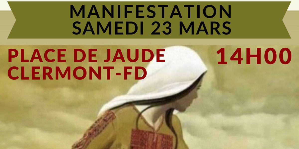Rassemblement 23/3/24 Clermont-Ferrand et Issoire "Halte aux massacres à Gaza et en Cisjordanie !"