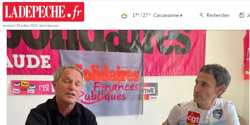 SOLIDAIRES Finances Publiques de l'AUDE : l'action syndicale se poursuit pendant les vacances ! Conférence de presse à Carcassonne