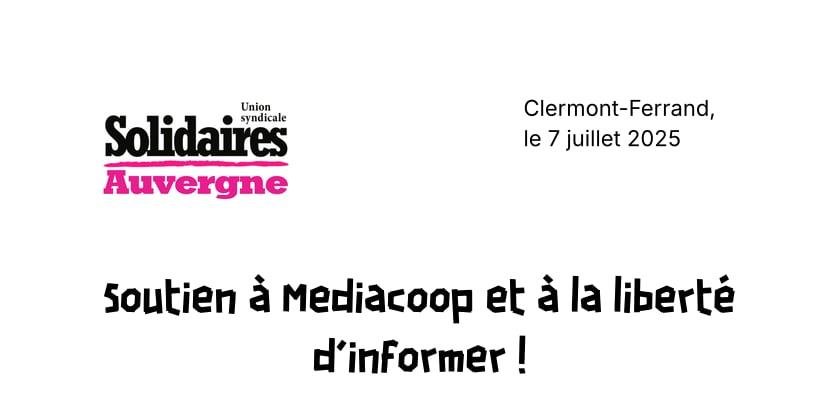 Solidaires Auvergne condamne vivement cette attaque contre la liberté de la presse et soutient Médiacoop dans son travail.