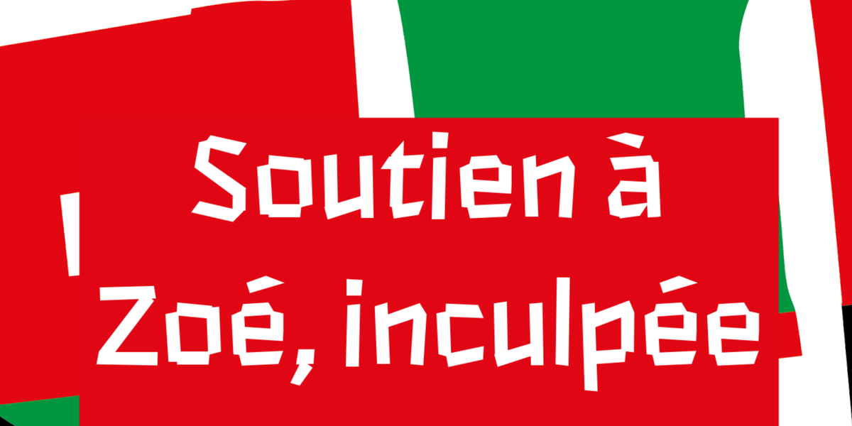 Nous vous communiquons cet appel à soutien pour Zoé : "Dans le but de pouvoir faire face aux frais de défense de Zoé, une cagnotte en ligne a été mise en place afin de la soutenir face à cette attaque. Le lien vers la cagnotte : https://www.gofundme.com/f/solidarite-pour-zoe