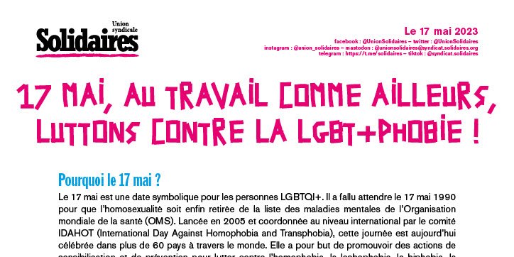 Lesbiennes, Gays, bi·es, trans, intersexes, ... : les mois de mai et juin sont ceux des fiertés! L’enjeu est bien sûr de visibiliser les LGBTQI+, mais surtout de porter haut et fièr·es nos revendications, au boulot et dans l’ensemble de la société !
