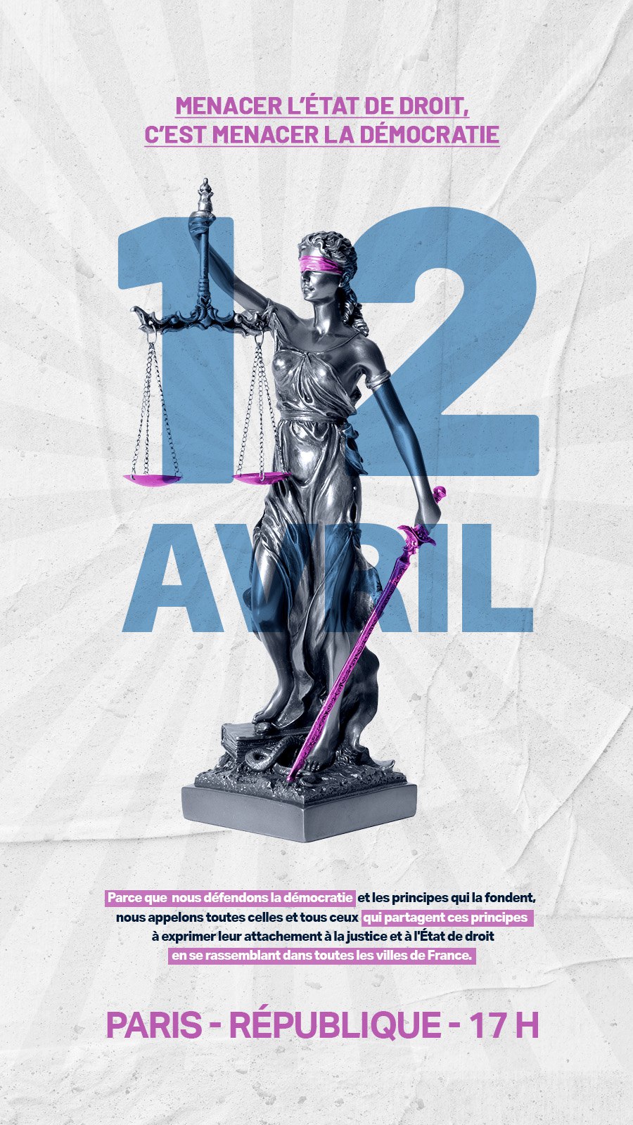 Parce que nous défendons la démocratie et les principes qui la fondent, nous, organisations de la société civile, appelons toutes celles et tous ceux qui partagent ces principes à exprimer leur attachement à la justice et à l’État de droit en se rassemblant le samedi 12 avril 2025 dans toutes les villes de France.