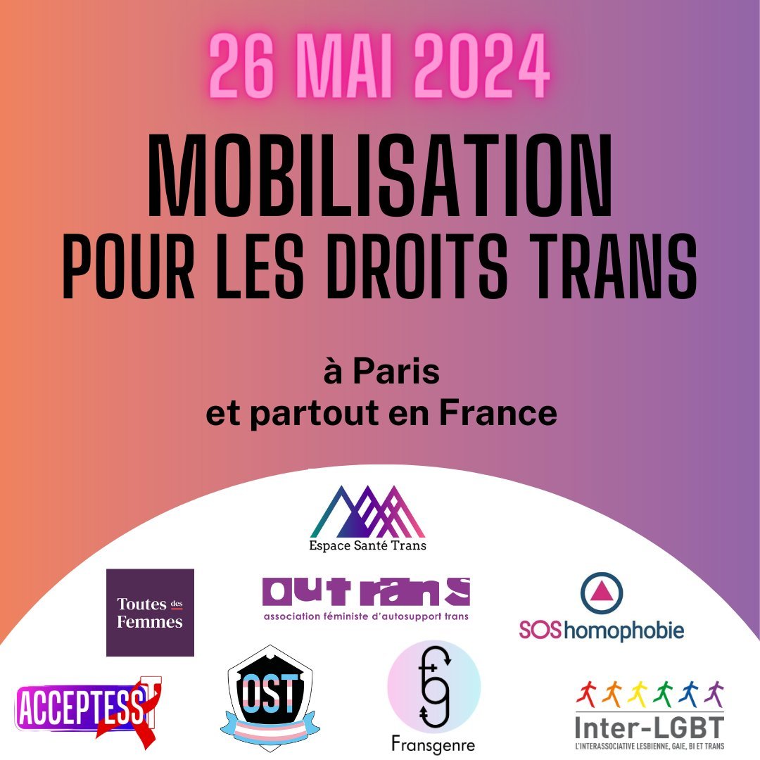 Appel unitaire : Le 26 mai, mobilisons nous pour les droits trans