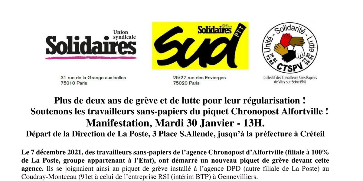 (Créteil) Manifestation le 30 janvier à 13h : + de 2 ans de lutte des travailleurs sans-papiers pour leur régularisation