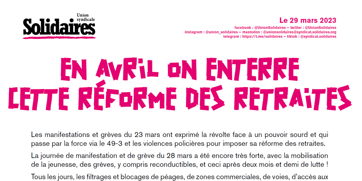 Tract de l'Union syndicale Solidaires pour le 6 avril