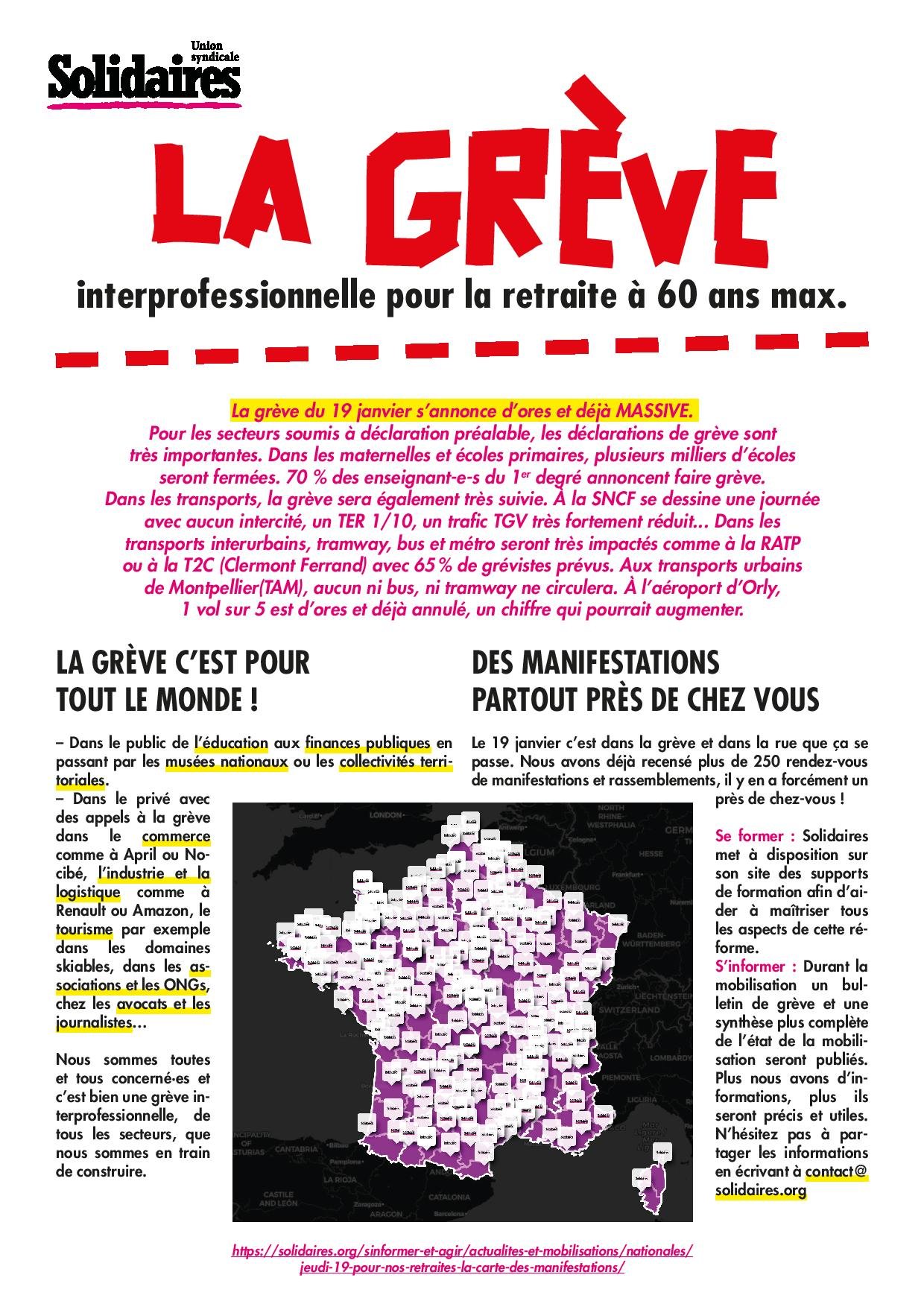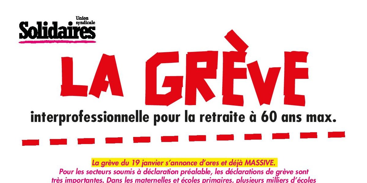 La grève du 19 janvier s’annonce d’ores et déjà MASSIVE.