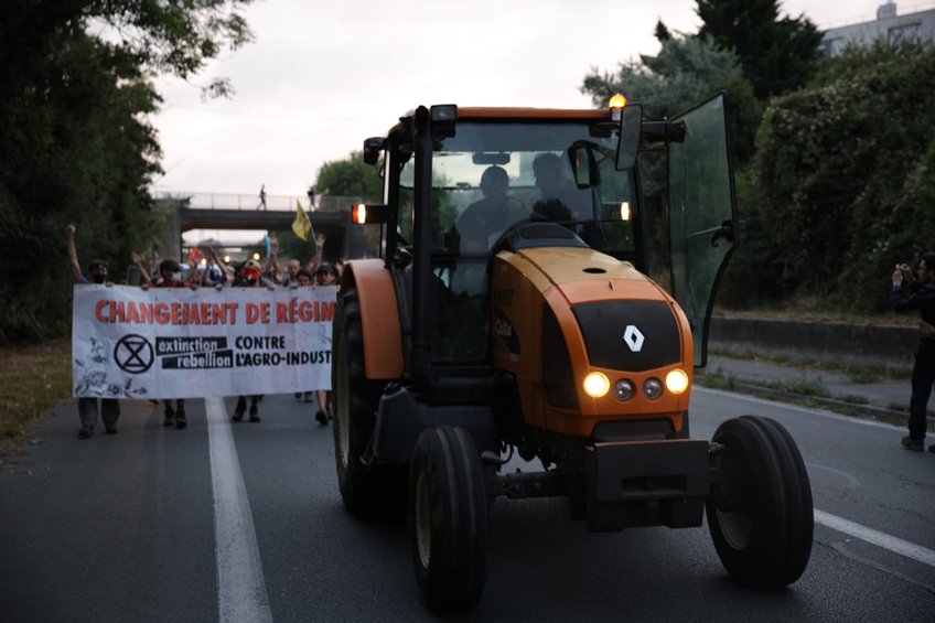 Vendredi, malgré les interdictions, nous avons convergé sur Terrena, une des méga-coopératives responsable de la construction des bassines dans la Vienne, jusqu'à ce que le dispositif policier décide de faire brûler le champ sur lequel se trouvait les manifestant-es. Le déploiement parallèle d'un convoi de 600 vélos et l'utilisation d'ingénieux systèmes accrochés à des cerfs-volants nous ont permis d'expérimenter de nouvelles formes de désarmement naturalistes des bassines du géant industriel Pampr'oeuf avec des lentilles d'eau. Le répertoire de gestes pour mettre fin aux méga-bassines ne cesse de s'enrichir !