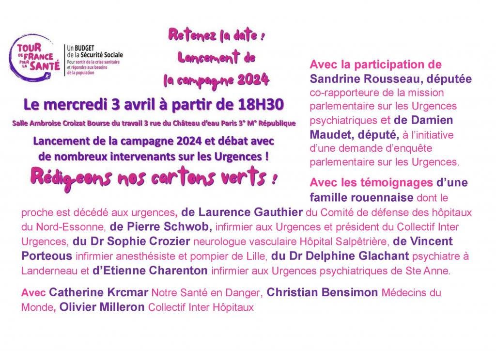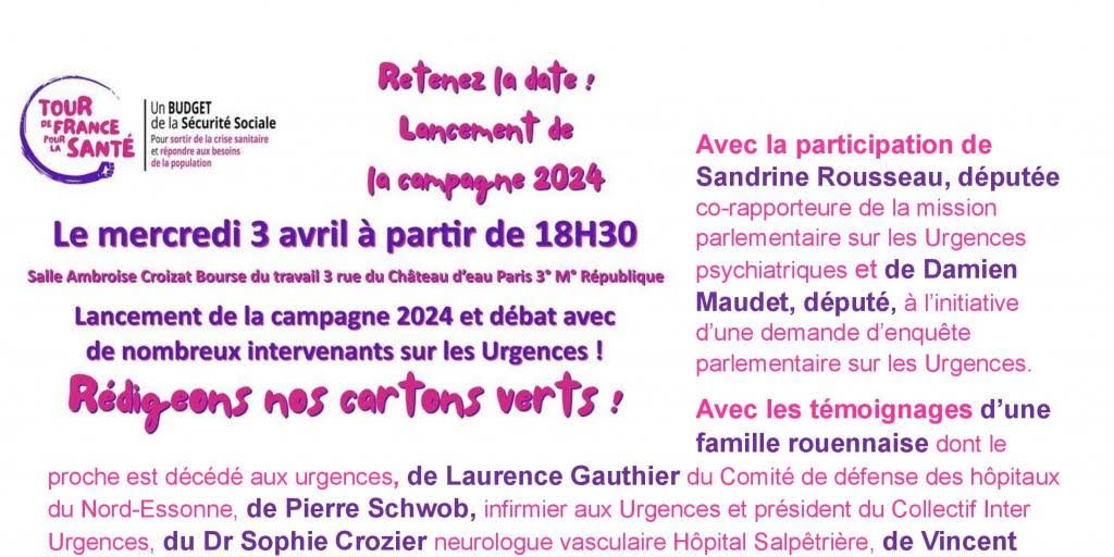 Lancement le mercredi 3 avril de la campagne 2024 pour le Droit à la Santé autour de la question des Urgences