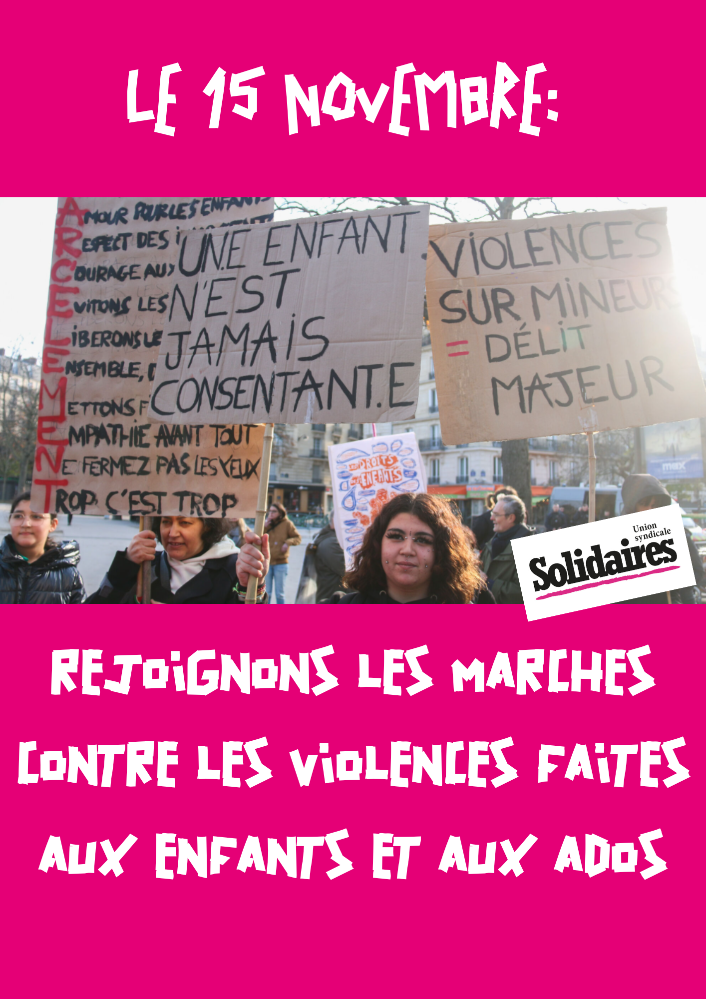 Pour défendre leurs droits, le collectif enfantiste appelle à se mobiliser et à rejoindre les manifestations organisées dans de nombreuses villes en France, le 15 novembre. L’Union syndicale Solidaires est signataire de cet appel à mobilisation.