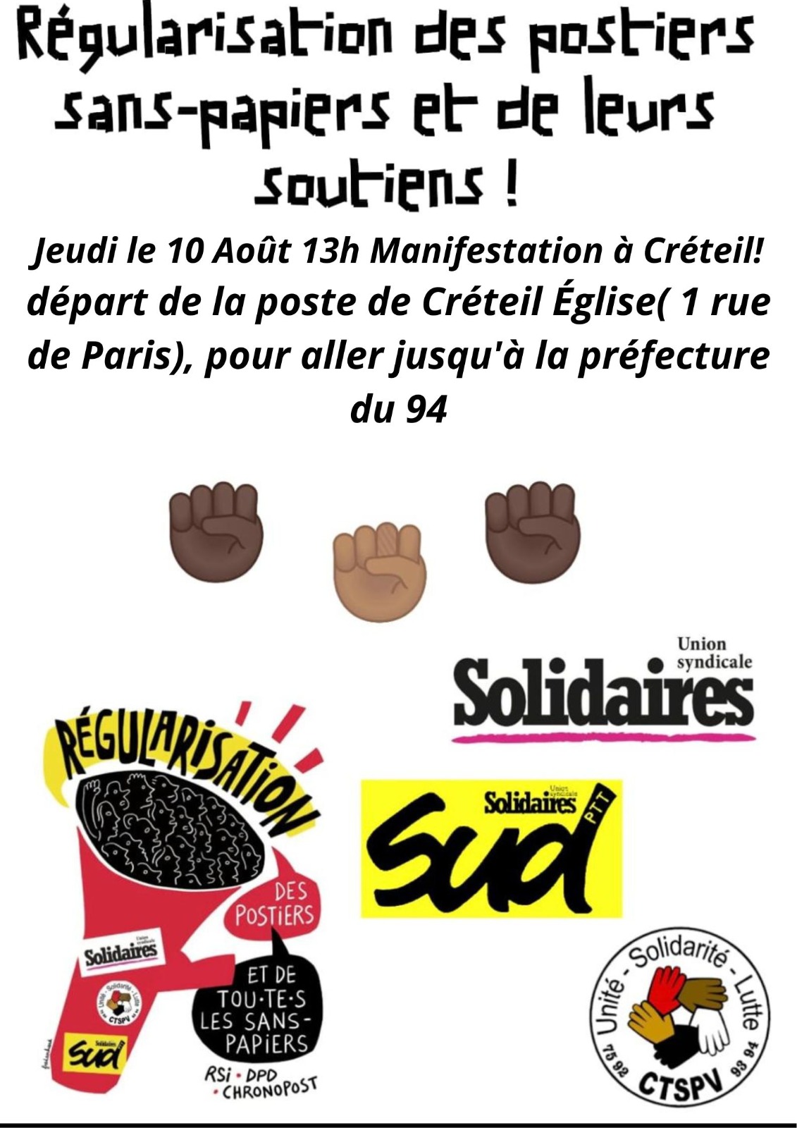 Manifestation en soutien aux sans-papiers grévistes de Chronopost le jeudi 10 août à Créteil