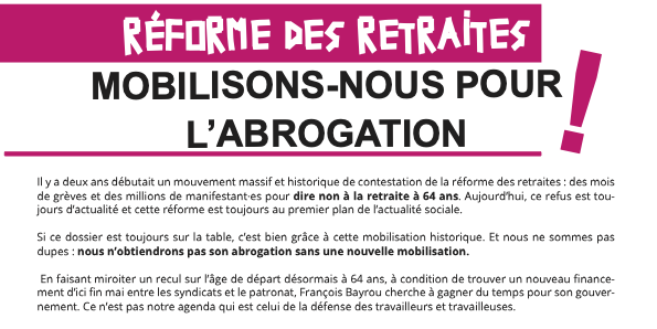 Si ce dossier est toujours sur la table, c’est bien grâce à cette mobilisation historique. Et nous ne sommes pas dupes : nous n’obtiendrons pas son abrogation sans une nouvelle mobilisation.