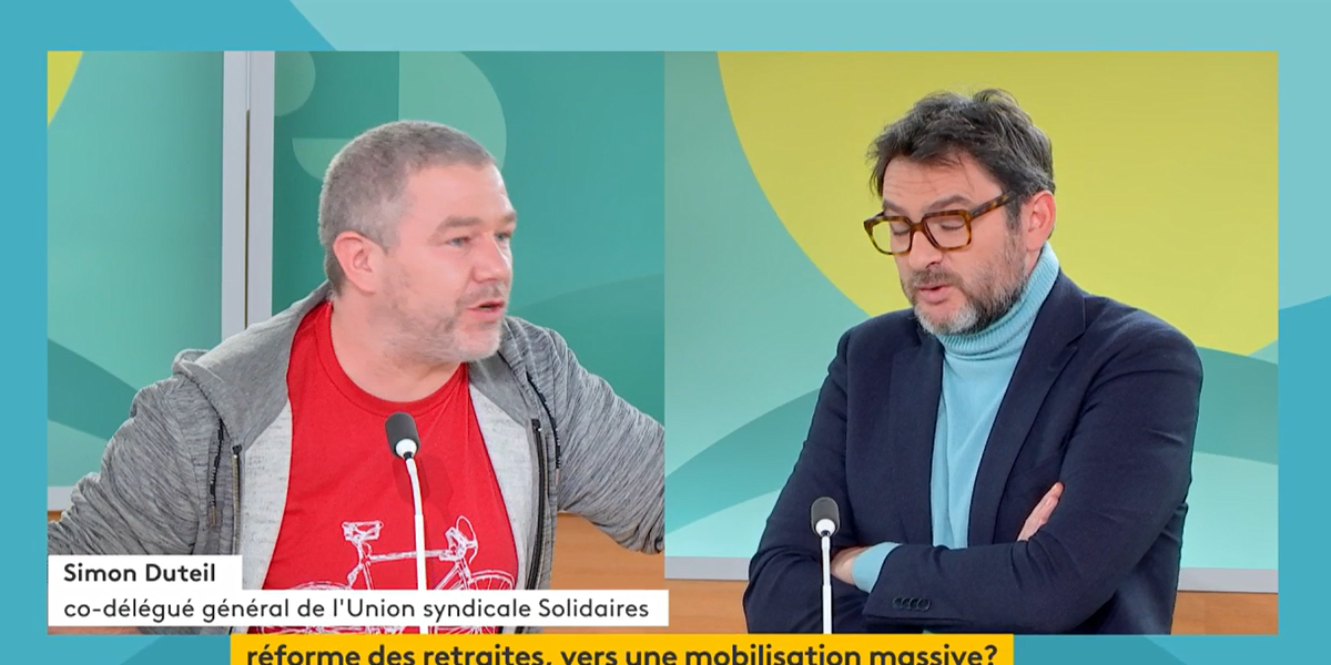 Retraites : débat entre Simon Duteil et des députés Renaissance et MODEM (france info tv)