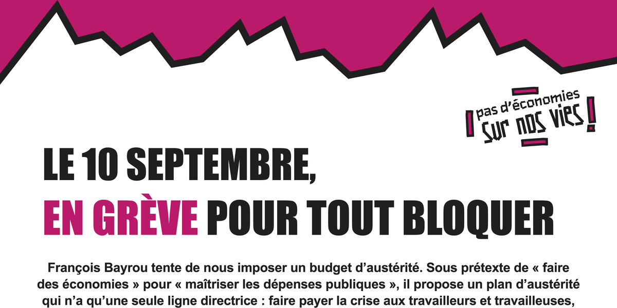 François Bayrou tente de nous imposer un budget d’austérité. Sous prétexte de « faire des économies » pour « maîtriser les dépenses publiques », il propose un plan d’austérité qui n’a qu’une seule ligne directrice : faire payer la crise aux travailleurs et travailleuses, aux retraité·es, aux jeunes, aux plus précaires, aux privé·es d’emploi, aux étudiant·es… C’est non ! Face à l’immense colère populaire, il tente un coup de poker avec un vote de confiance le 8 septembre. Mais le problème, ce n’est pas le nom du ministre, c’est sa politique. Nous devons censurer ce budget par la grève et imposer d’autres choix.