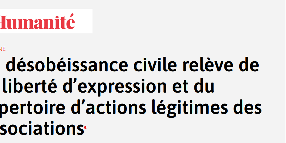 La désobéissance civile, pourtant, est bien loin de constituer un mépris de la République. Au contraire, nombre d’avancées essentielles n’auraient pas eu lieu sans elle : désobéir, c’est la grève avant le droit de grève, les avortements clandestins avant la loi Veil… C’est un outil utilisé par une grande partie des mouvements qui ont apporté des avancées sociétales majeures, en France comme ailleurs. La Cour européenne des droits de l’homme a affirmé à plusieurs reprises que la désobéissance civile dans un domaine d’intérêt général constitue un des aspects les plus importants du droit de la liberté d’expression.