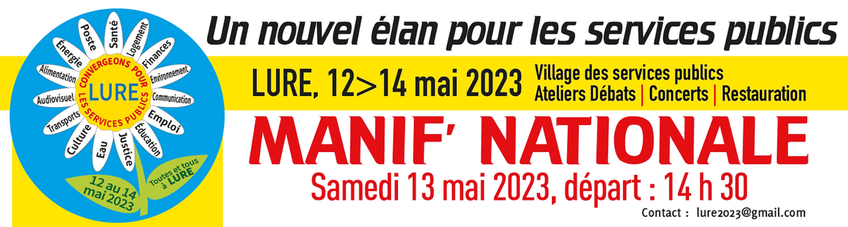 Un nouvel élan pour nos services publics - RDV à Lure du 12 à 14 mai - Ateliers/débats et Manif Nationale !