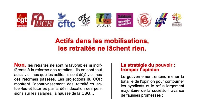 Nos organisations s’inscrivent totalement, aujourd’hui et demain, dans les initiatives proposées par l’intersyndicale nationale, comme retraités, comme parents, pour nos enfants et nos petits-enfants.
