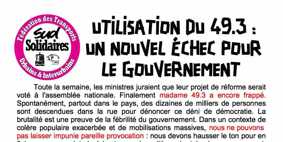 Après le 49.3 : renforcer et généraliser la grève !