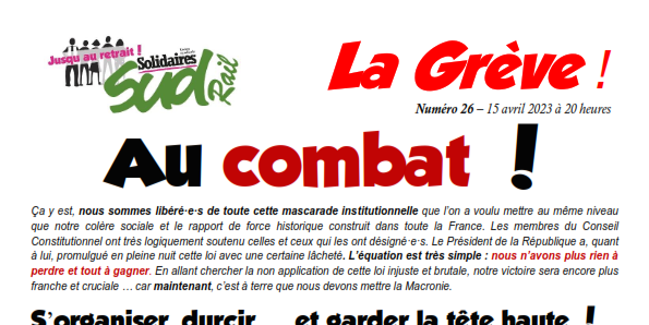 Ça y est, nous sommes libéré·e·s de toute cette mascarade institutionnelle que l’on a voulu mettre au même niveau que notre colère sociale et le rapport de force historique construit dans toute la France. Les membres du Conseil Constitutionnel ont très logiquement soutenu celles et ceux qui les ont désigné·e·s. Le Président de la République a, quant à lui, promulgué en pleine nuit cette loi avec une certaine lâcheté. L’équation est très simple : nous n’avons plus rien à perdre et tout à gagner. En allant chercher la non application de cette loi injuste et brutale, notre victoire sera encore plus franche et cruciale … car maintenant, c’est à terre que nous devons mettre la Macronie