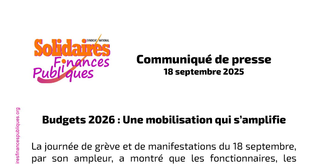 Solidaires Finances Publiques continuera à faire amplifier la grève pour imposer un budget de justice fiscale, sociale et environnementale.